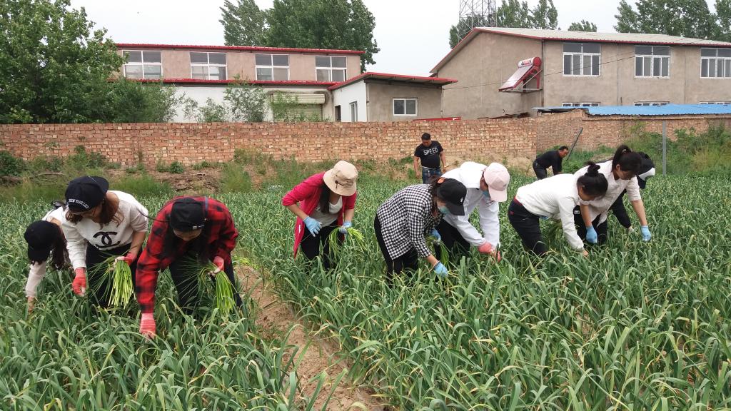 5月1日上午,外国语学院团总支书记肖丽敏带领学院20名青年志愿者到祥符区西姜寨乡帮助劳动力少的农户抽蒜薹。
