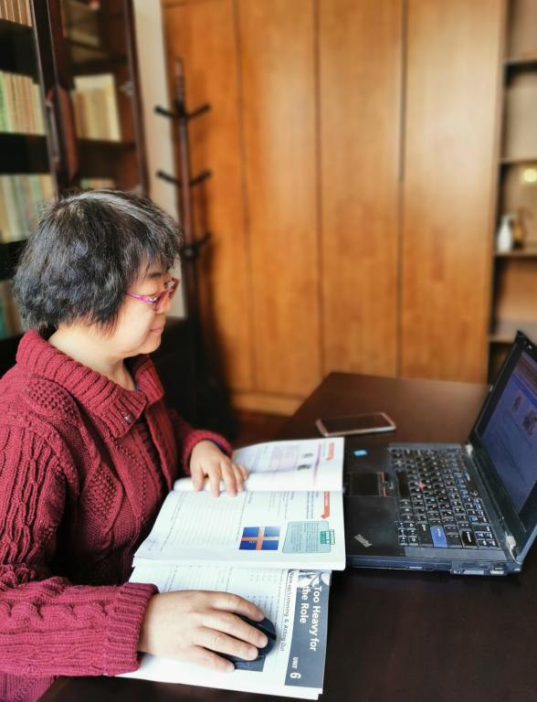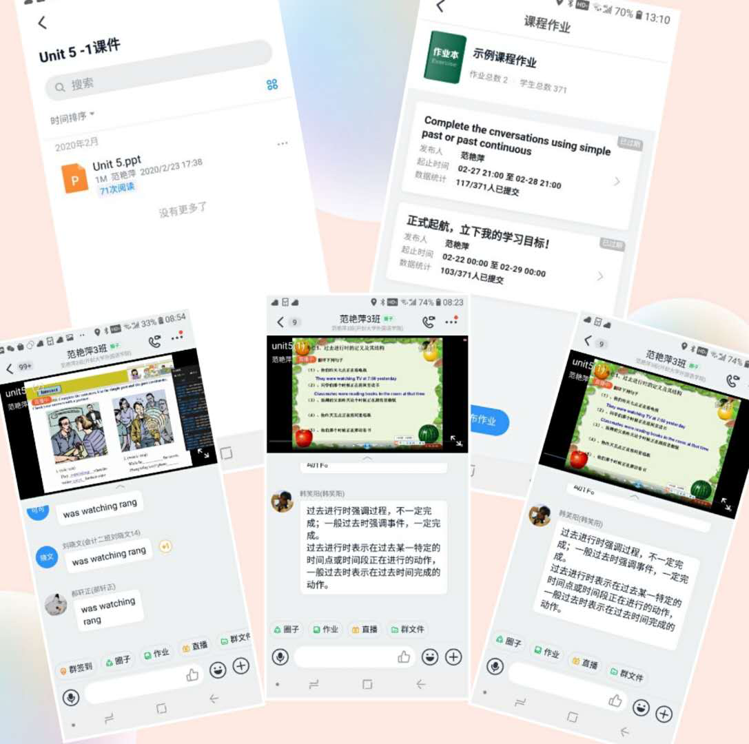 她叫范艳萍,外语学院职业英语教研室一名教师,担任18级公共英语教学工作。接到学校关于延期开学期间网上教学的通知,她就开始按照学校“停课不停学”的要求,积极为开学的线上教育做准备。在电脑和手机端分别开始下载、安装中国大学MOOC平台、云班课、云课堂智慧职教、超星尔雅及学银在线、雨课堂、腾讯会议、QQ直播、钉钉等各类软件,每天除了吃饭时间,整天泡在软件的学习与演练中,甚至还把同事拉进群远程探讨直到深夜,对几乎所有在线直播平台进行了无数次的模拟直播,测试PPT播放效果、调试音效,制定计划,经过认真测试比对,考虑到平台稳定性和学生互动的便利性.最后确定在理想网络状态下使用钉钉功能展示PPT并语音通话授课;一旦网络出现卡顿情况,分享屏幕功能不能正常使用,就在微信群里把提前存入Word文档中PPT和授课内容以发文字、发图片、发短语音的形式上课。真是线上一分钟,线下小时功。