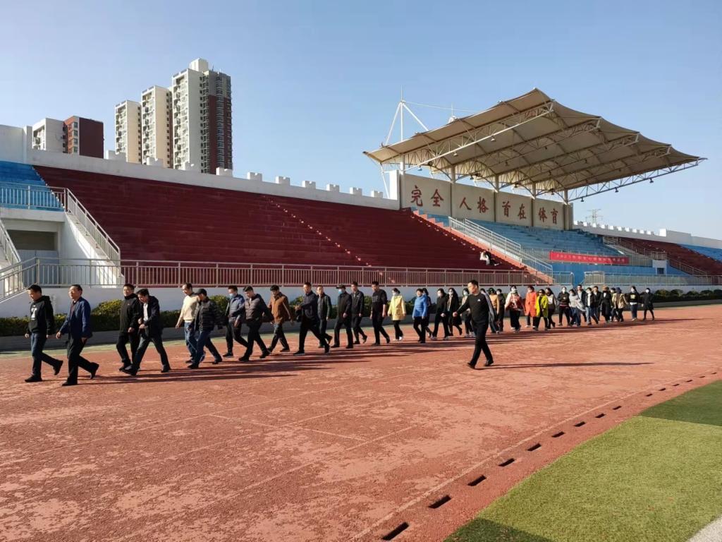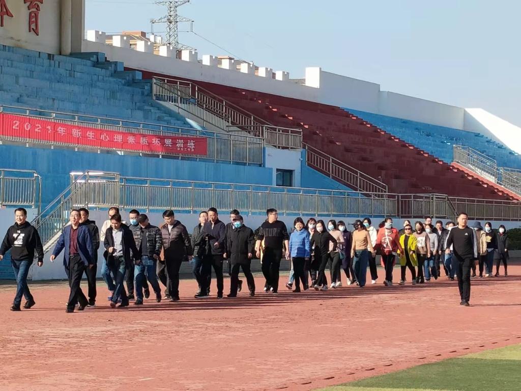 为丰富广大老师们的业余文化生活,促进教职工锻炼身体、增强体质,进一步落实校工会《关于开展2021年度秋冬季教职工健身月活动的通知》,结合365官网疫情防控工作要求,11月25日下午,外国语学院分工会组织学院全体教职工在运动场举行主题为“强身健体 战胜疫情 健康生活 快乐工作”健步走活动。