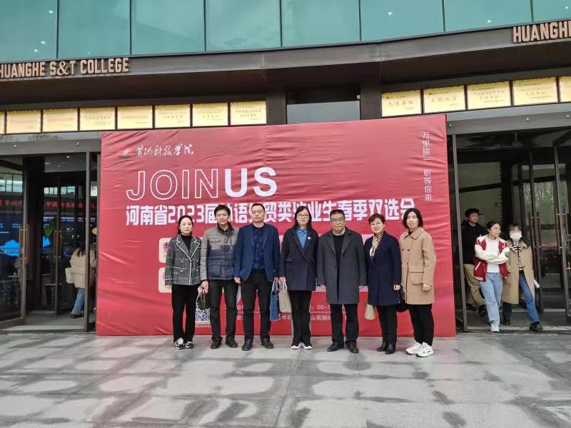 为了深入推进2023年毕业生就业工作,贯彻落实访企拓岗促就业专项行动,为毕业生开拓更多就业创业岗位,3月23日,外国语学院党总支书记孟祥茹、院长程欣带领副书记秦新峰及各专业教研室主任参加由黄河科技学院承办的河南省2023届外语外贸类毕业生春季双选会。