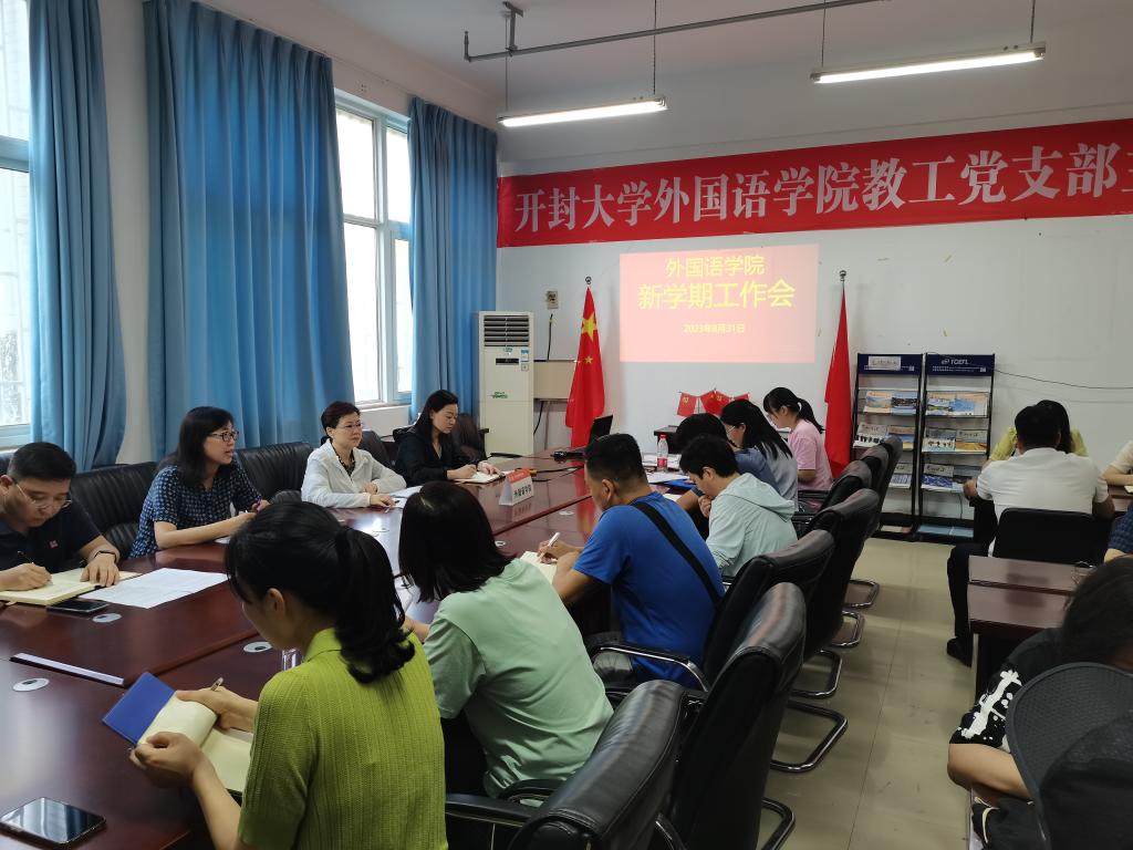 为贯彻落实学校新学期会议精神,统一思想,凝聚共识,确保学院新学期各项工作顺利开展,8月31日下午,外国语学院召开新学期工作会议,学院全体教职工参加会议。