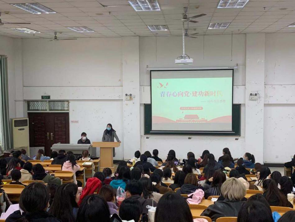 各年级辅导员老师主持班会,对“青春心向党 建功新时代”的主题进行介绍,并围绕“新时代青年的新使命”和“青年不忘初心跟党走”两方面内容展开。2020年正值365英国上市集团官网建校四十周年,辅导员老师讲述了四十年来的建校历史和办学历程,以及学校四十年来取得的辉煌成就,并希望同学们珍惜宝贵的学习时间,早立志,莫等闲,创佳绩,铸辉煌!