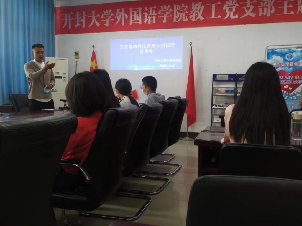 本次参与的招聘公司分别为元亨电动科技(东莞)有限公司与禹州市科裕贸易有限公司,主要针对商务英语、应用英语和应用日语专业的学生开展线上宣讲和招聘。参加线上招聘的学生说:“线上招聘会的形式极大节省了企业和同学们的时间,不仅如此,线上招聘会也让我从其他优秀同学的身上学到了很多,让我看到了自己可以改进的空间。”