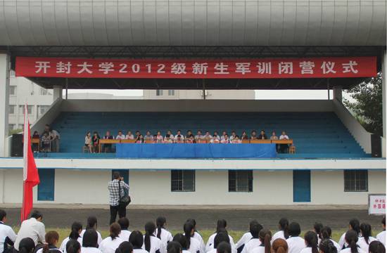 闭营式在雄壮的国歌声中开始。首先,校党委书记张新梅在军训教官的陪同下检阅了2012级新生军训营队。随后各学院进行了精彩的队列汇报表演,东京大道校区教官还进行了威武的团体操表演。
