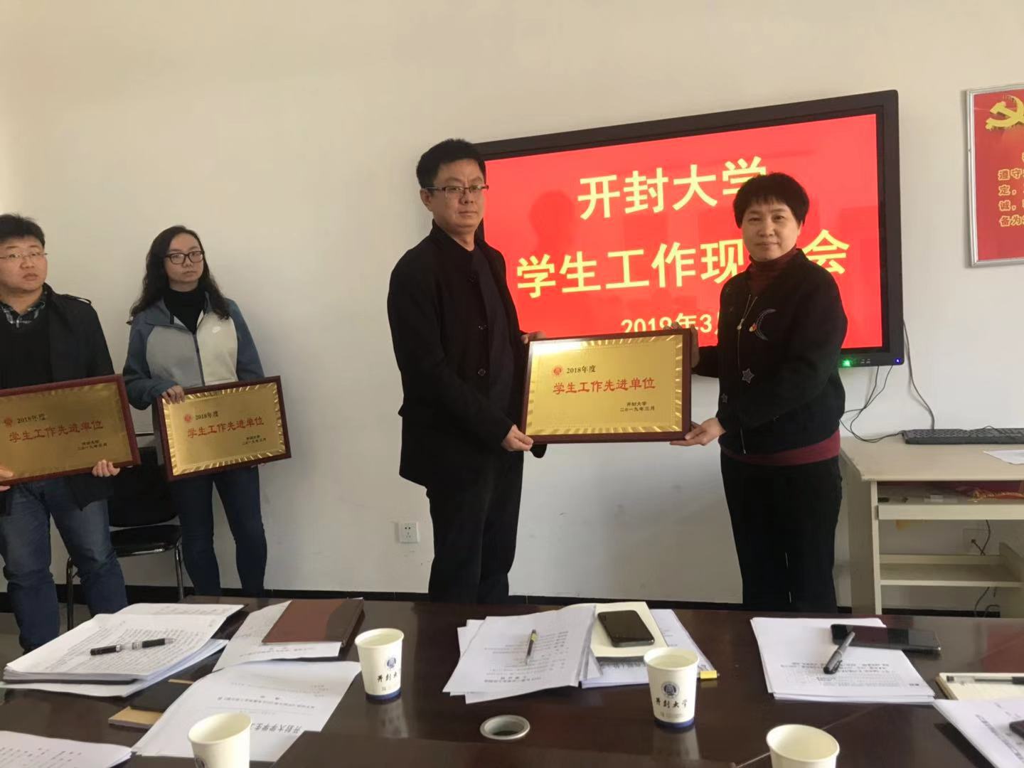 最后,成主席给2018年学生工作考核优秀的6个院部颁发了奖牌,对下阶段学生工作提出五点要求:一、提高对学生工作的政治站位;二、认真履职,切实贯彻落实好上级部门安排的工作;三、处理好宏观(国家的方针、政策)、中观(学校的各项政策)、微观(学生动态)的关系;四、提高自身工作水平,提前谋划、提前考虑;五、强化责任意识,敢于担当,一心为公。