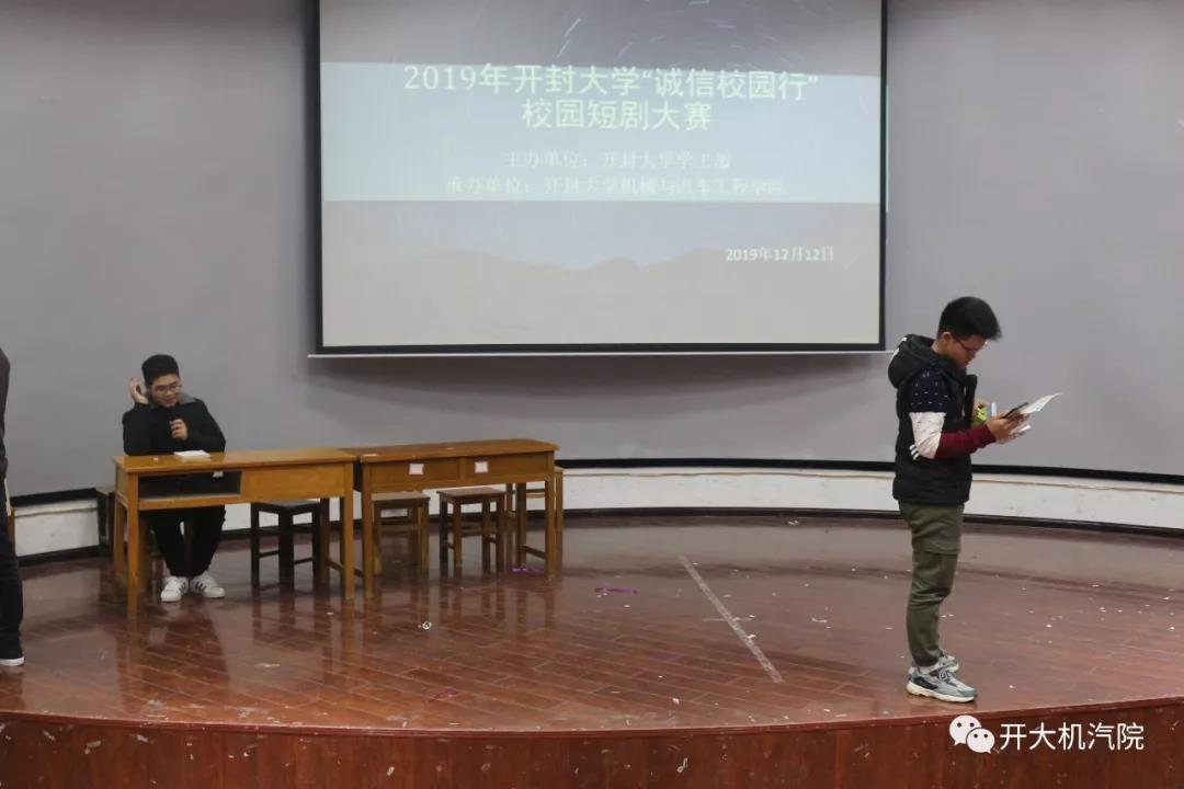 为塑造积极向上的校园文化精神,进一步促进校园诚信文化建设,营造良好校园诚信氛围。365官网于2019年12月12日下午在南五楼报告厅举行了“诚信校园行”的校园短剧大赛活动,本次活动由校学工部主办,机械与汽车工程学院承办。意在通过短剧的形式培养同学们的诚信意识。活动邀请了全校各院部19级辅导员老师担当评委,全校2019级部分学生观看了整个活动。