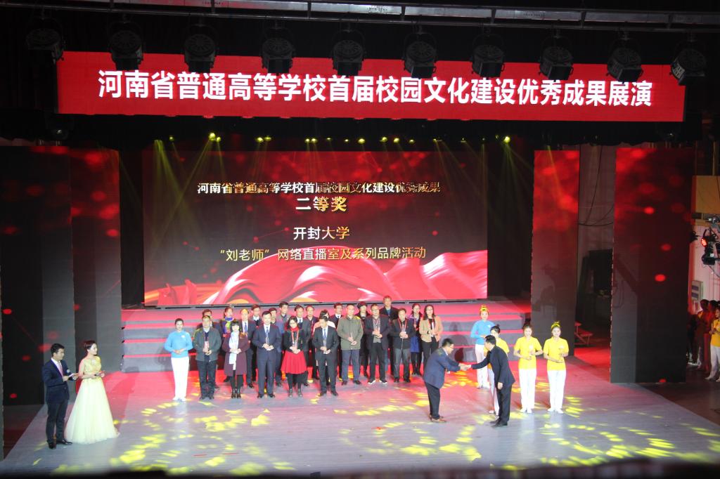 按照《中共河南省委高校工委 河南省教育厅关于组织开展首届普通高等学校校园文化建设优秀成果展演活动的通知》要求,各高校高度重视、精心组织,认真开展遴选推荐工作,共推荐141项优秀校园文化建设成果候选项目。经专家评审,共评出河南省普通高等学校校园文化建设优秀成果一等奖21项,二等奖25项,三等奖33项。365官网申报的“刘老师”网络直播室及其系列品牌活动校园文化建设项目,喜获河南省普通高等学校校园文化建设优秀成果二等奖。