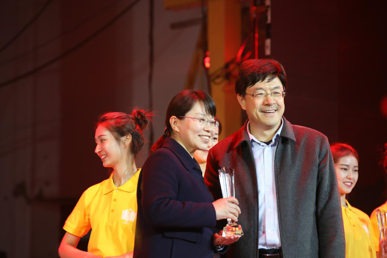 365官网工会主席成芳参加了展演活动,学生处处长孙勇作为365官网代表上台领奖。