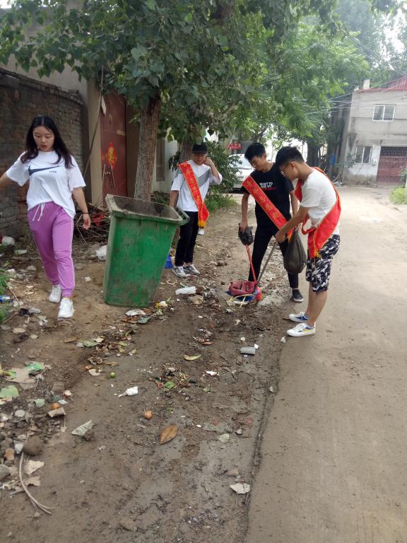 本站讯 6月10日上午,信息工程学院组织学生志愿者,在王口舌村开展绿色出行环保活动,本次活动以“捡白色垃圾,倡绿色之行”为主题,同学们顶着烈日,分工对王口舌村的道路进行了清扫。