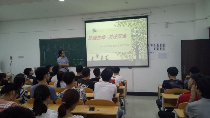 本站讯 期末将近,为营造良好考试氛围,同时在暑假假期即将来临时对学生进行必要的安全教育,17级全体学生于6月21日晚在401、402、404教室召开了考风考纪暨假期安全教育主题班会,会议由辅导员张娜娜老师主持。