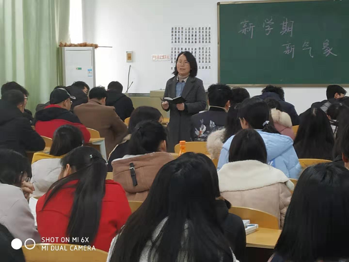 本站讯 新学期伊始,为安排班级各项事务,营造学习氛围,同时使同学们加强学习自律意识,2月24日中午,我院辅导员张娜娜在3号楼4楼教室召开了“新学期新目标及加强学风”主题班会,信息工程学院17级、18级全体同学参加了本次班会。