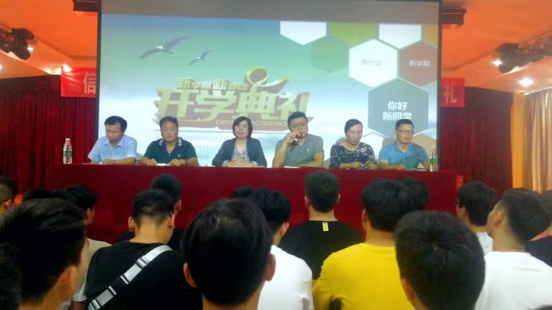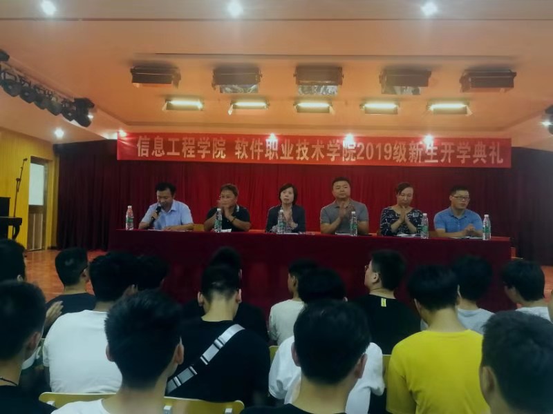 本站讯 9月8日下午,信息工程学院、软件职业技术学院在16号楼报告厅举行2019级新生开学典礼暨军训动员大会。学院党总支书记袁震院长杨桦胡增顺教授副院长李响张才千出席了典礼。学院全体辅导员老师、2019级600余名新生参加了典礼。典礼由学院党总支副书记高剑南主持。