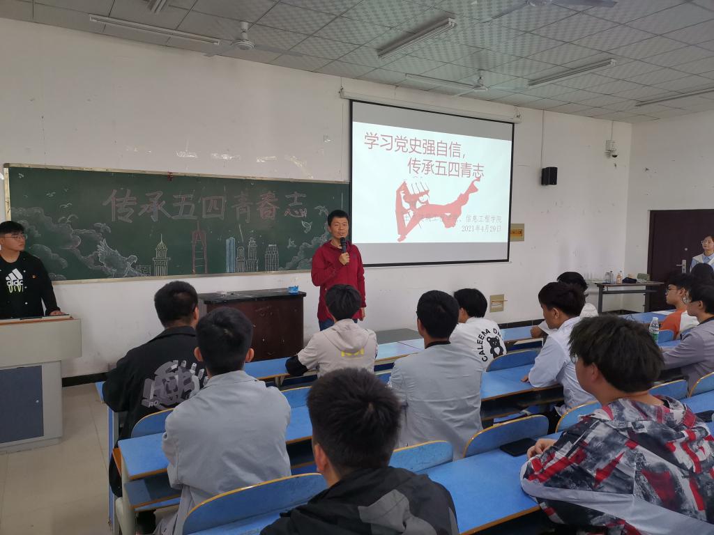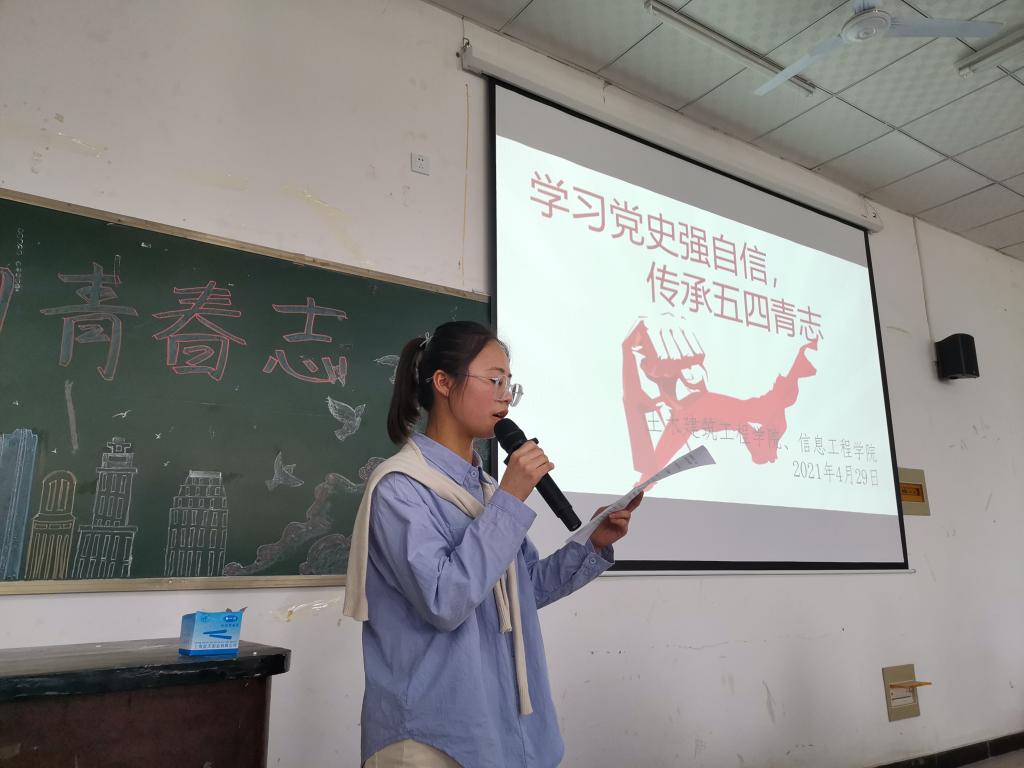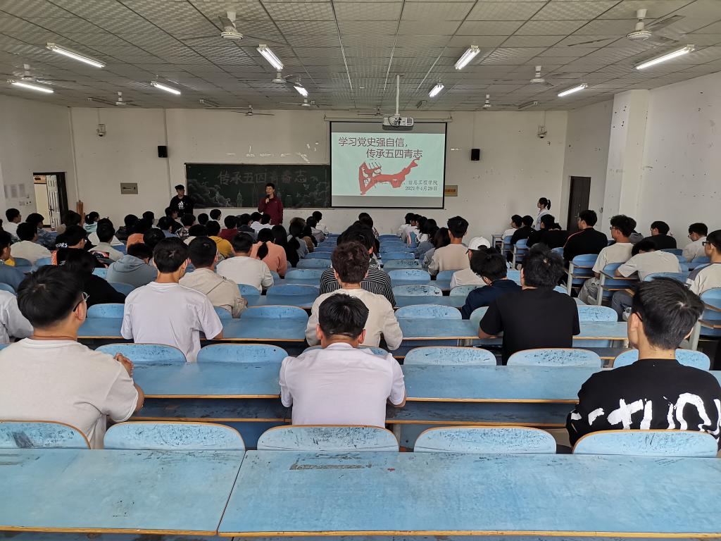 本站讯 在即将迎来“五四运动”102周年纪念暨五四青年节之际,恰逢全校上下积极开展党史学习教育。信息工程学院、土木建筑工程学院联合开展“学习党史强自信 传承五四青春志”主题团日活动。信息工程学院团总支负责人贺钰老师、土木建筑工程学院团总支书记赵文婷老师与两个学院102名青年同学代表参加了团日活动。