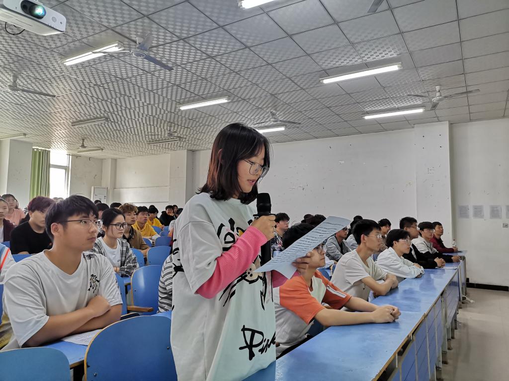信息工程学院贺钰老师号召同学们在人生最美好的青春年华要“立鸿鹄志 做奋斗者”,坚持把学习作为一种责任、一种追求、一种生活方式,并在学习中做知行合一的实干家,坚持理论联系实际,练就过硬本领,努力成为学有所长、业有所专的行家里手,用埋头苦干的行动创造实实在在的成绩。土木建筑工程学院团总支书记赵文婷老师说当代中国青年是与新时代同向同行、共同前进的一代,生逢盛世,肩负重任,她号召同学们要牢记习近平总书记和上级领导嘱托,坚定理想信念、努力学习提升、坚持不懈奋斗,努力成为一名德智体美劳全面发展的社会主义建设者和接班人。