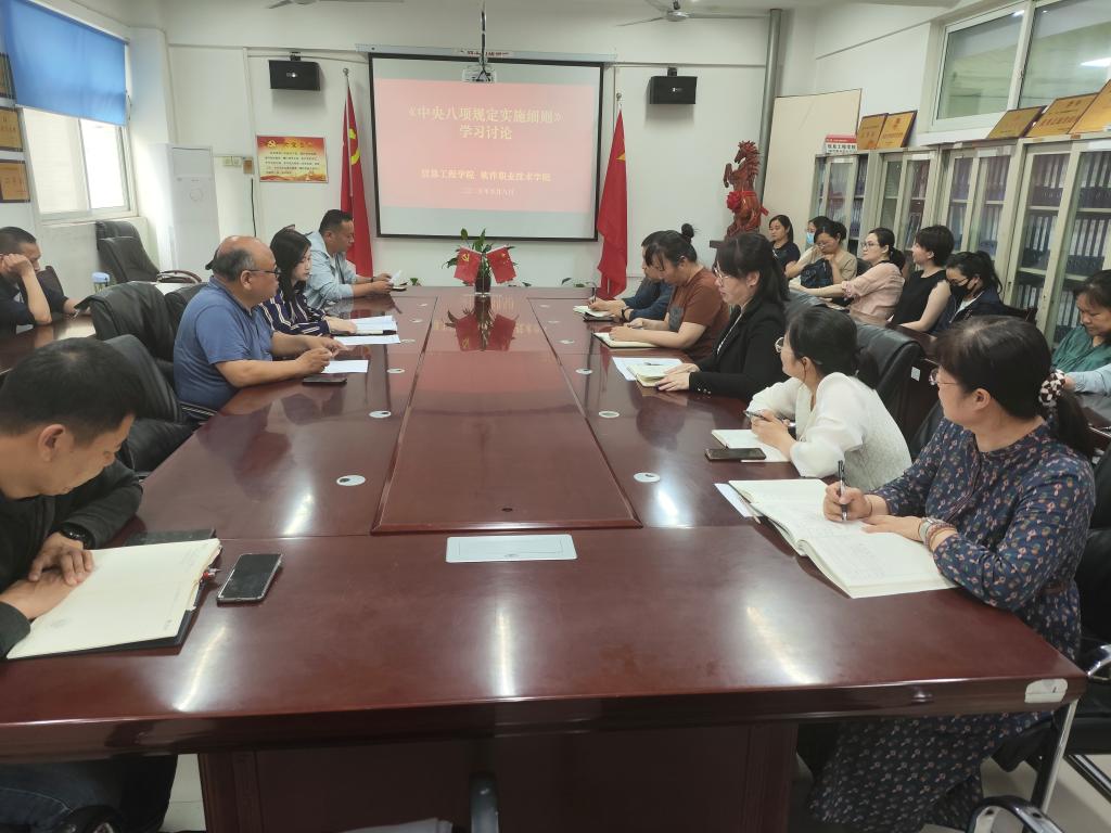 本站讯 为深入学习贯彻中央八项规定精神,落实中央关于加强作风建设的决策部署,5月8日下午,信息工程学院党总支在3#312会议室组织全体党员开展政治理论学习教育。学习教育由教工二支部书记王晓婷主持。
