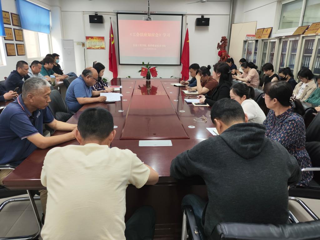 本站讯 为全面贯彻落实《习近平总书记在庆祝中华全国总工会成立100周年暨全国劳动模范和先进工作者表彰大会上的讲话》重要指示精神,5月8日下午,信息工程学院(软件职业技术学院)于3#312会议室召开《工会法应知应会》专题学习会。本次学习活动由学院党总支书记武莹主持,全体教职工全程参与。