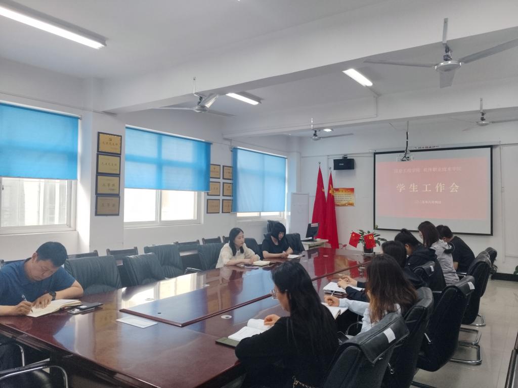 本站讯 6月4日下午,信息工程学院(软件职业技术学院)召开学生安全稳定工作会,学院党总支书记武莹、副书记陈茜,全体辅导员参加了会议。