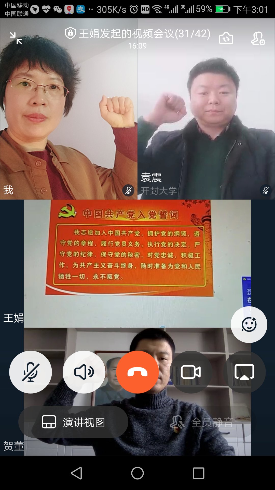 首先由王娟同志领誓,全体党员重温了入党誓词,然后由贺钰老师带领大家学习《在统筹推进新冠肺炎疫情防控和经济社会发展工作部署会议上的讲话》。然后由王娟老师诵读毛泽东同志二首诗《送瘟神》之后,全体党员填写了电子版的党员积分表并缴纳了当月党费。