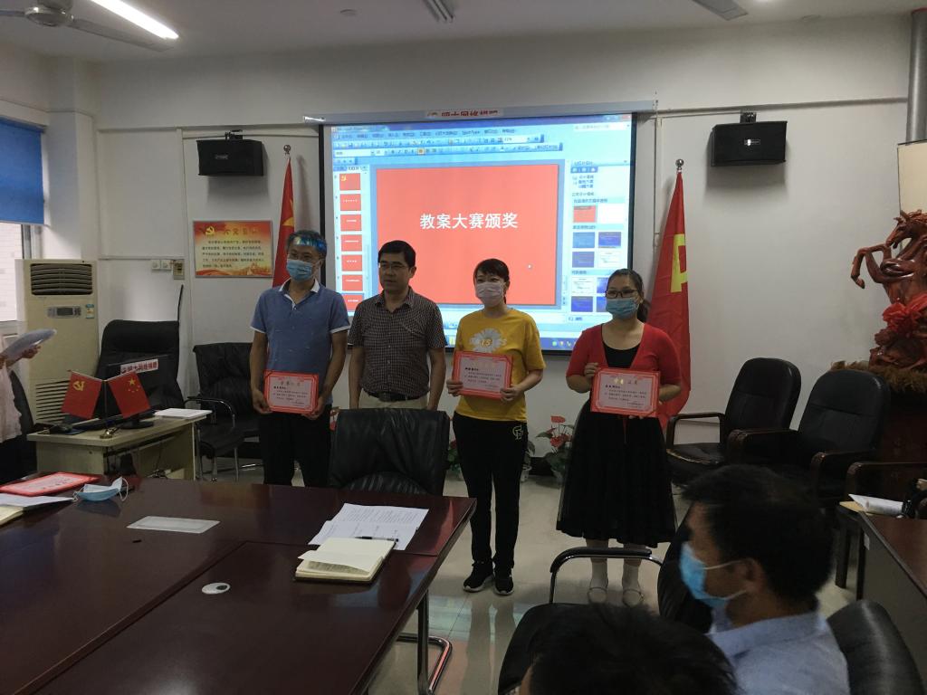 活动过程中王娟书记带领大家学习了两会精神和教育部印发的《高等学校课程思政建设指导纲要》,并邀请赵部长为上学期期末课程思政教案比赛获奖的老师进行了颁奖。本次教案比赛旨在进一步提升课程思政融入教学过程中教师教案编写水平,促进优秀教案的展示,提升教学能力,同时落实了《纲要》精神,为今后的思政育人做好铺垫。