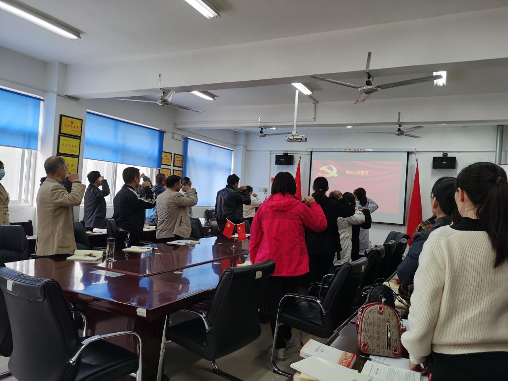 首先,党员同志们佩戴党员徽章,高举右拳,在王娟书记的领誓下,铿锵有力地重温入党誓词。按照活动议程,过政治生日,自觉缴纳4月份党费,并通报党员3月份积分。