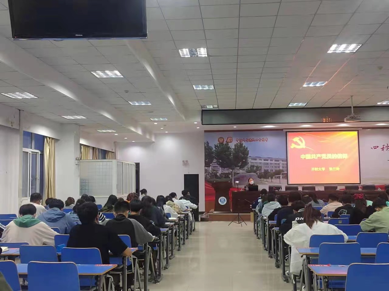 在近20天的主题教育活动期间,马克思主义学院院长常素芳,张兰玲教授、陈友东、卢慧勇等骨干教师,信息工程学院党总支书记袁震、副书记高剑南和学院教工党支部各位委员结合自身多年的教学经验和长期从事党务工作的经验,向信息工程学院、软件职业技术学院党员发展对象、入党积极分子、青年团员、青年志愿者和青年学子代表讲解了毛泽东思想、习近平新时代中国特色社会主义思想的内涵;党的十九届六中全会在党的历史中的重要意义;党员的信仰是中国共产党人的精神支柱和政治灵魂,也是保持党的团结统一的思想基础;如何更好的认清当前国际形势,在当前世界未有之大变局中找准自身定位,确定好自身发展方向和如何积极努力争取尽早成为一名合格党员。