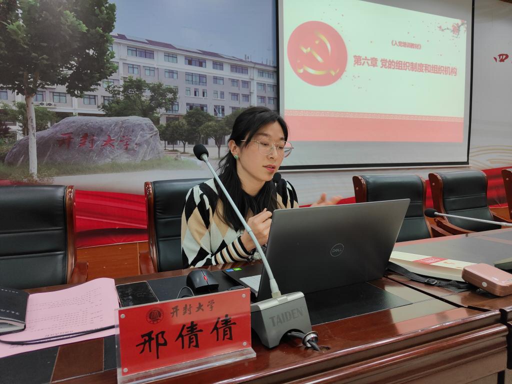 仪式在雄壮的国歌声中开始。仪式上袁书记代表学院党总支对学员们提出期望:端正态度,正确认识参加党课培训的意义;通过培训,更好投身到学院学雷锋活动中,进一步端正入党动机;严格遵守纪律,以实际行动圆满完成学习任务。王院长向全体学员介绍此次党课的课程安排。2022级计算机应用技术专业程龙代表学员们表达了参加党课培训的信心。随后,学院学生党支部组织委员、思政课兼职教师邢倩倩为学员们讲授本期第一课《党的组织制度》。