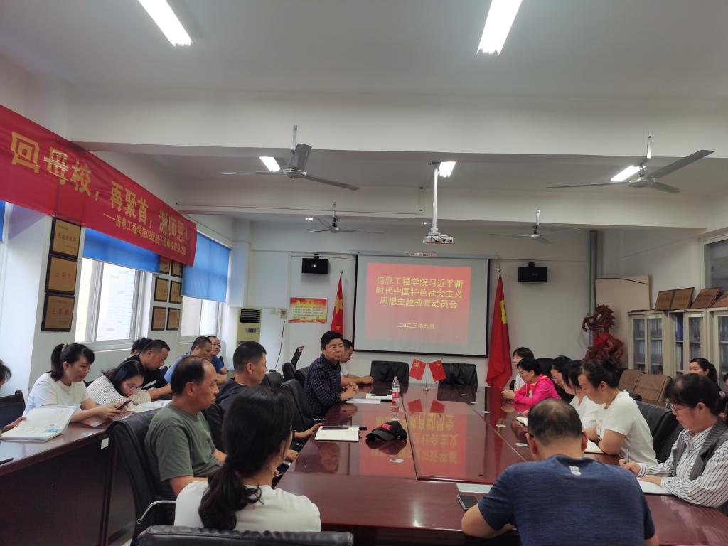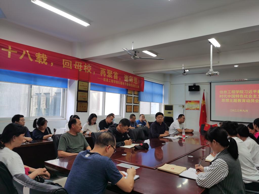 本站讯 9月21日下午3时,信息工程学院党总支在院会议室召开学习贯彻习近平新时代中国特色社会主义思想主题教育动员会,院全体教师党员参加了本次动员会,会议由院党总支书记袁震同志主持。
