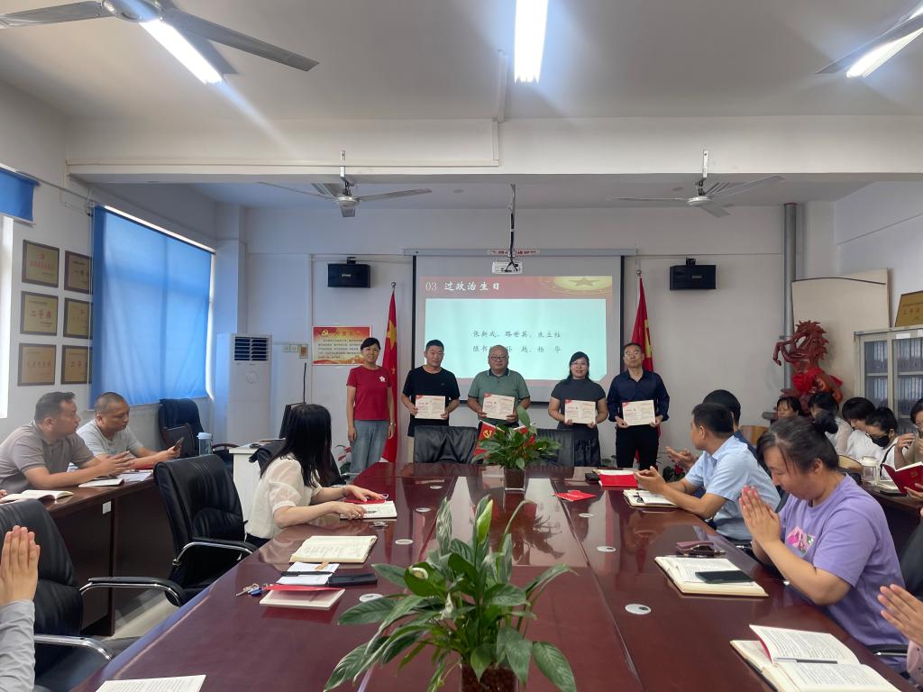 活动伊始,全体党员高举右拳,集体重温入党誓词,旨在引导党员铭记党的宗旨,积极发挥好党员的先锋模范作用,永葆共产党员先进本色,践行入党承诺,进一步增强党性观念。教工一支部林莉莉与教工二支部崔丹丹同志带领同志们一起研读并学习了《中国共产党纪律处分条例》的第二章和简明问答的部分内容,通过对纪律处分条例进行了研读,同志们深刻认识到遵守纪律的重要性,并自觉做到守纪律、讲规矩、知敬畏、存戒惧,在严守党纪上远离违纪红线。会上为6位同志过政治生日,并发放政治生日贺卡。全体党员交纳了本月的党费,通报了5月份的积分情况。会后,各支部还会以严肃考风考纪,加强安全教育为主题,做好期末考试及暑期志愿服务工作。