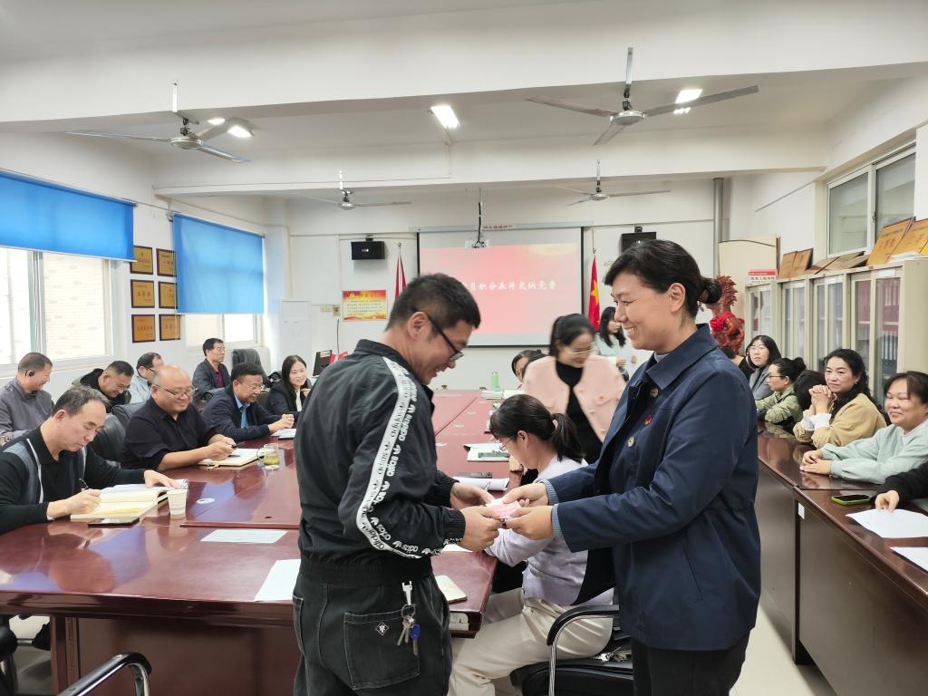 紧接着,会议通报了党员积分情况,并现场发放了9月份积分表,要求同志们实事求是的填写。此外,活动还特别设置了志愿服务环节,全体党员教师纷纷下宿舍与学生谈心谈话,了解学生的学习生活情况,以及毕业实习准备情况,并积极答疑解惑,提醒同学们在宿舍注意安全及防诈骗等事项。