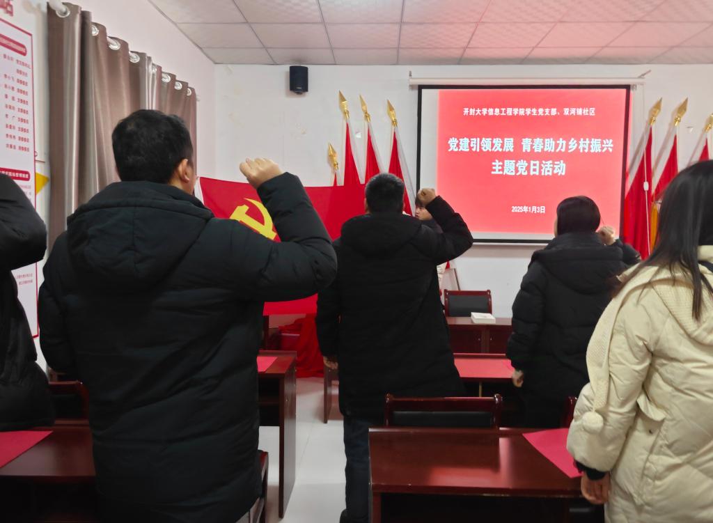 本站讯 为进一步学习党的二十届三中全会精神,1月3日上午,信息工程学院(软件职业技术学院)党总支书记武莹、学生党支部书记贺钰、设施农业与装备教研室主任李林,带领学生党支部师生党员前往城乡一体化示范区水稻乡双河铺社区,开展“党建引领发展,青春助力乡村振兴”主题党日活动。