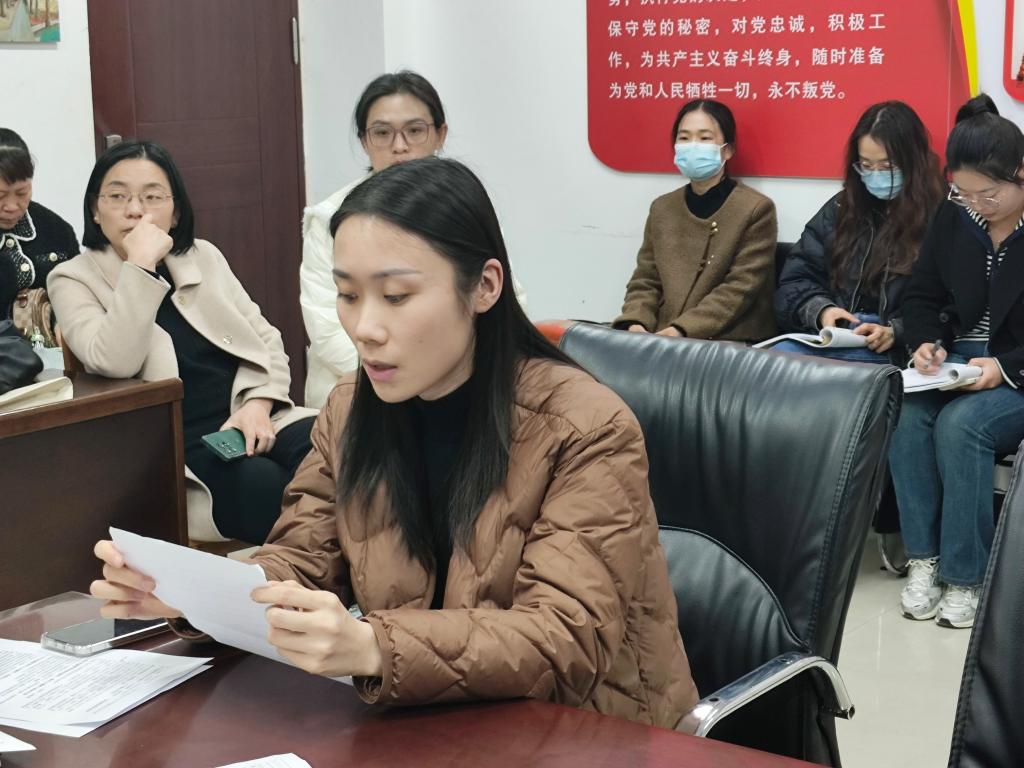 随后,武莹为本月过政治生日的李静老师送上生日贺卡,传递党组织的关怀与温暖。李静回忆了2005年入党时的激动心情,20年过去了,那份澎湃的热忱从未冷却,反而在岁月的磨砺中愈发炽热深沉。