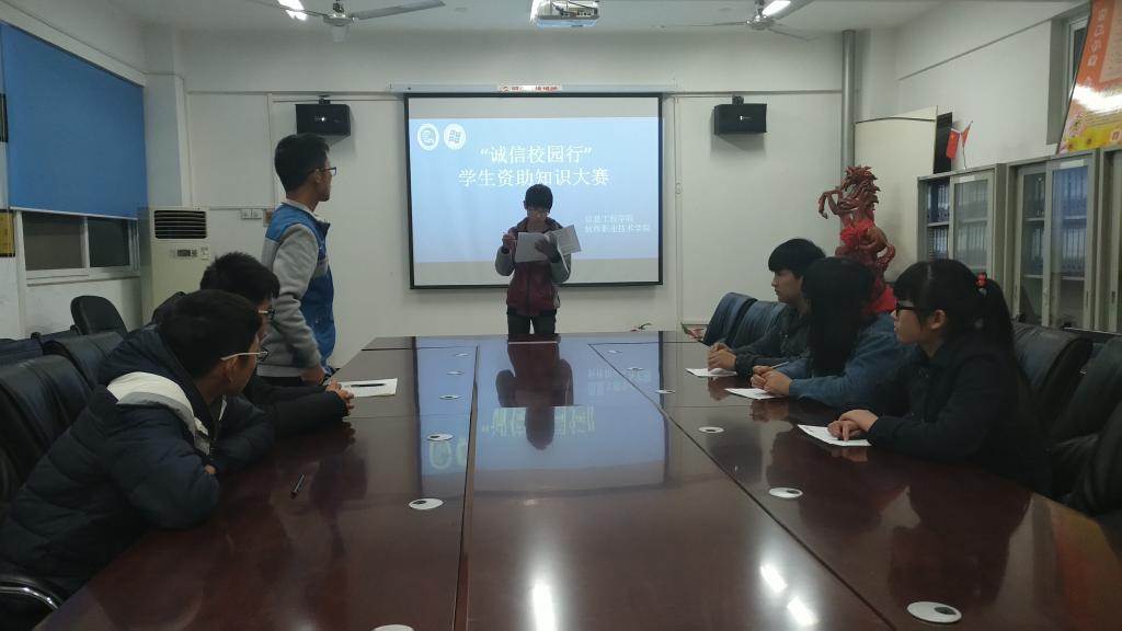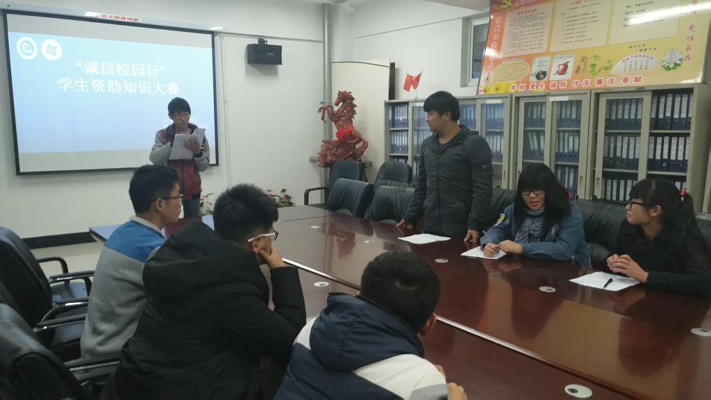 本站讯 为响应省资助中心文件精神,根据校资助中心的安排,12月4日晚,信息工程学院在3号楼312室举办了“诚信校园行”学生资助知识大赛,大赛由院资助管理员张娜娜、王沐昕指导,院团学联干部担任评委,各班级、部门干事踊跃报名,热情参与。