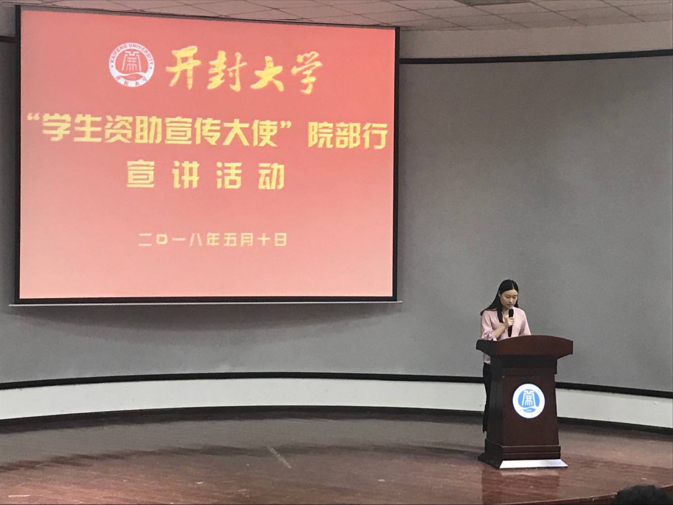 本站讯 5月10日下午,在国教院一楼报告厅举办了“ ‘学生资助宣传大使’院部行”活动。信息工程学院、软件职业技术学院和国际教育学院的学生参加了活动。