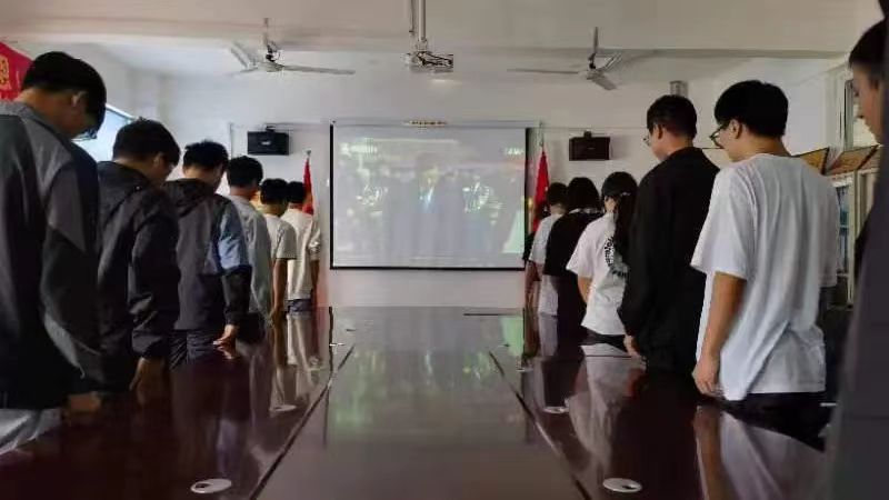 观看过程中,大家同出席仪式的习近平等国家领导人和参加仪式的各界代表一同齐唱国歌,并向为中国人民解放事业和共和国建设事业英勇献身的烈士默哀,表达了学院青年学子对革命英烈的缅怀之情。