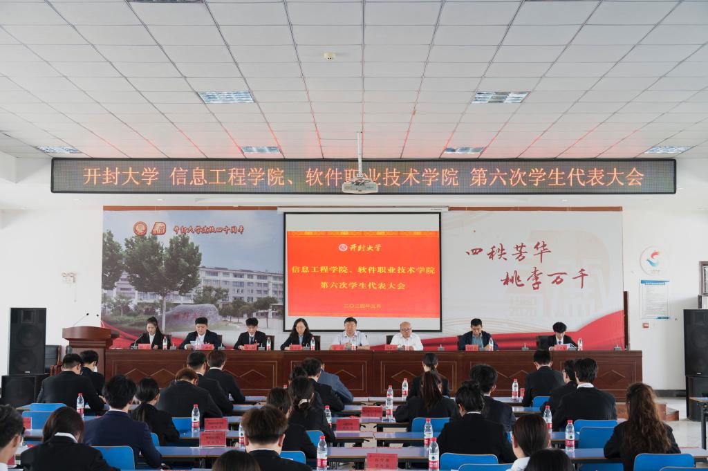 本站讯 殷殷嘱托萦绕耳畔,挺膺担当共谱新篇。在全校青年学子按照上级团组织、青联、学联组织下发的《关于深入学习宣传贯彻习近平总书记五四青年节对全国广大青年寄语精神的通知》要求,深入学习贯彻习近平总书记寄语精神之际,5月12日,信息工程学院、软件职业技术学院第六次学生代表大会在土木六楼报告厅胜利召开。校团委副书记陈彦霏,信息工程学院党总支书记袁震、院长张新成、党总支副书记李红礼出席了开幕式。学院团总支老师代表、辅导员老师代表,黄河水利职业技术学院信息工程学院学生会代表,365官网各兄弟院部学生会代表、青年团干及学生干部代表和90余名大会代表参加了开幕式。