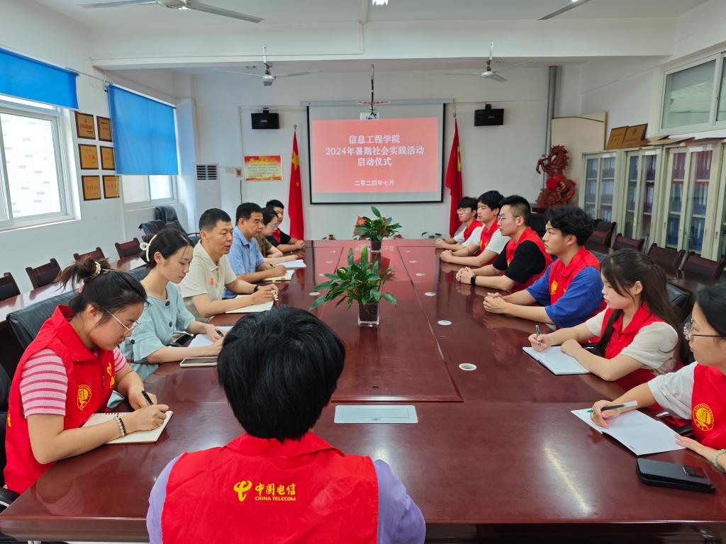 本站讯 7月4日,信息工程学院2024年暑期社会实践活动正式启动。上午启动仪式上,学院党总支副书记李红礼,代表学院领导班子向参加社会实践活动的同学们给予了充分肯定,鼓励大家在安全实践的基础上,充分运用专业知识,争做知行合一的实干家。