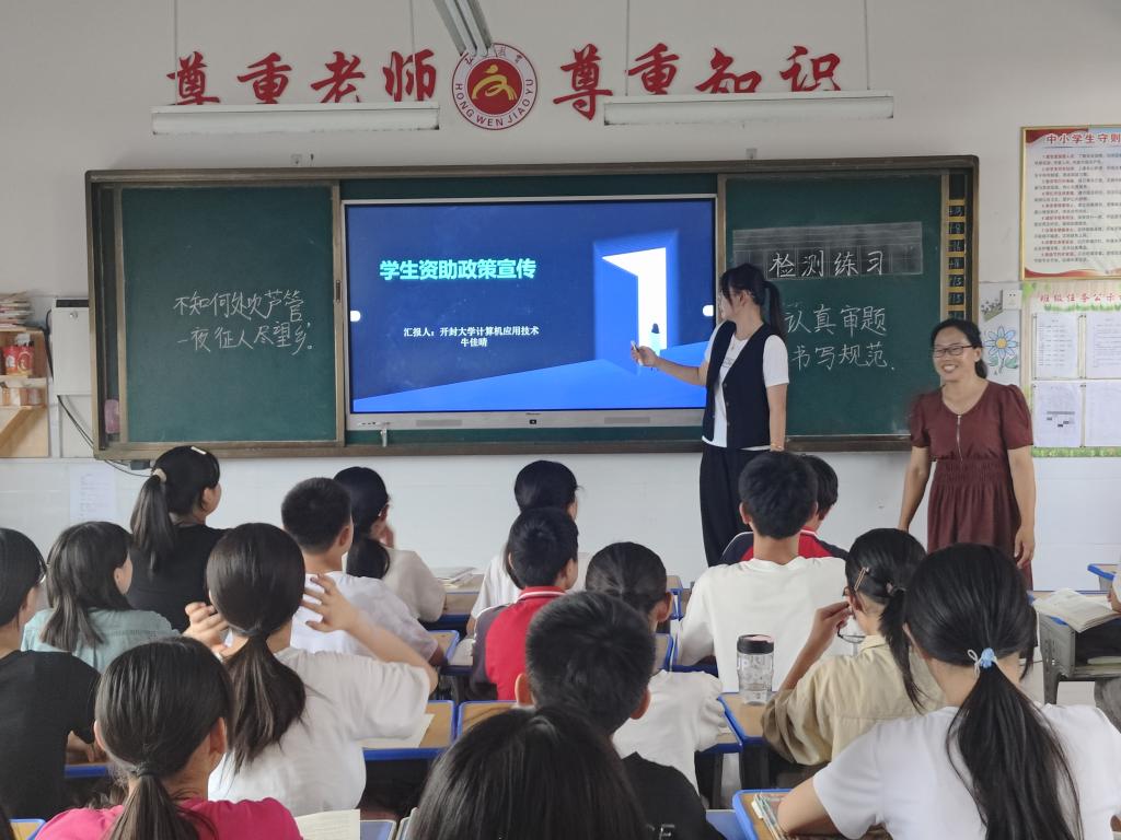 在宣讲过程中,暑期资助宣传大使张家辉、牛佳晴结合自身受资助的亲身经历,向学弟学妹和乡亲们讲述了自己在国家资助政策的帮助下,在学院老师的指导下,申请获得国家资助的过程;介绍高校地贷款、本专科奖助学金、绿色通道等资助政策;分享自己克服经济困难,心无旁骛地专注学业,以及如何脚踏实地,用所学知识与技能回馈学校、回报社会,一步一步追逐梦想的经历。同学和家长们认真聆听讲解,表示对国家、学校的资助政策有了更清晰的理解,也被宣传大使们自强不息的事例所激励。