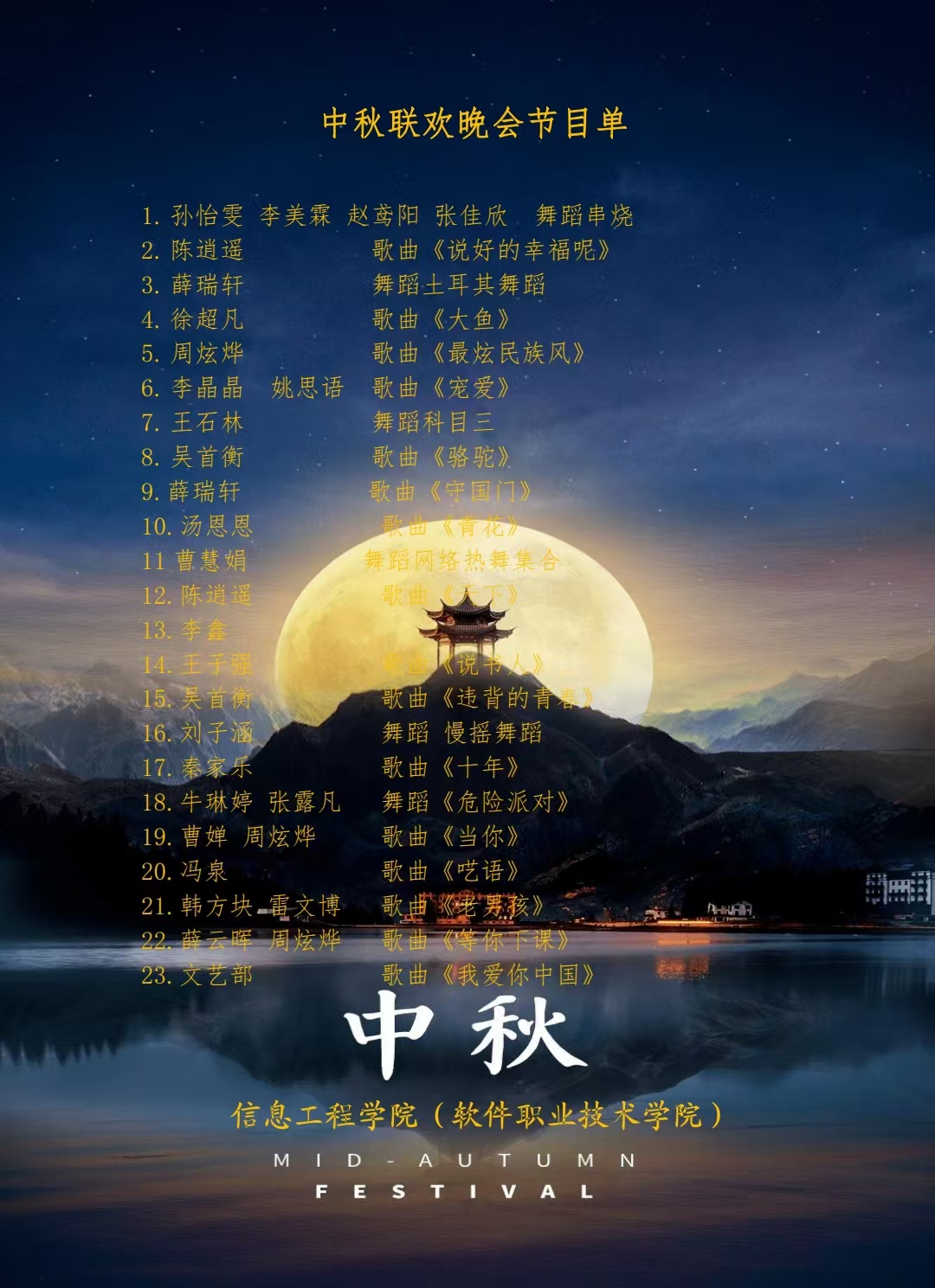 信息工程学院、软件职业技术学院举办“军歌嘹亮 共庆中秋”迎新中秋晚会