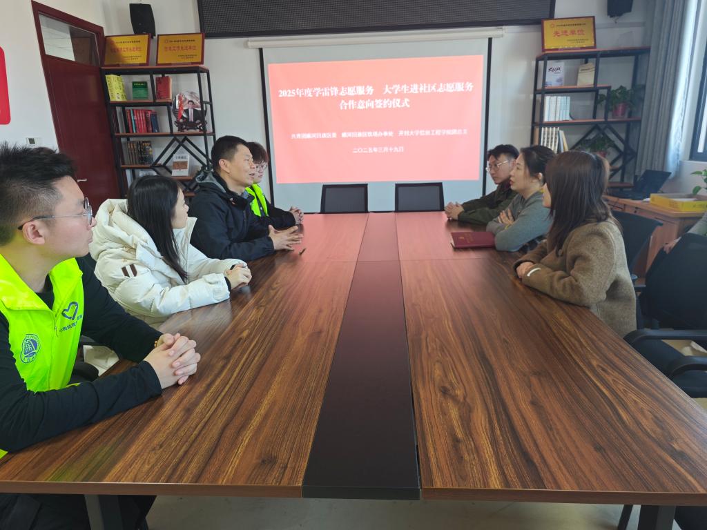 团顺河回族区委书记王飞、铁塔办事处组宣统委员张蕊;信息工程学院团总支书记贺钰、辅导员高俊笑及10余名“小青桔”青年志愿者代表参加了签约仪式。仪式上,学院分别与团顺河回族区委和铁塔办事处签订了2025年度的工作合作意向。王飞就今后如何加强共青团组织对大学生就业指导工作提出了建议,张蕊就大学生志愿者如何更好地在基层工作中接受锻炼给出了指导意见。