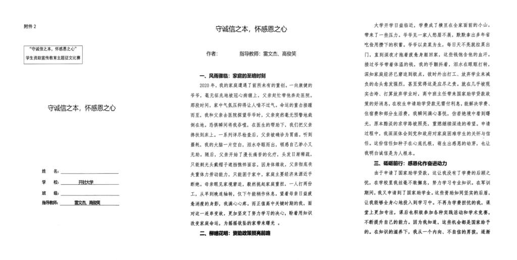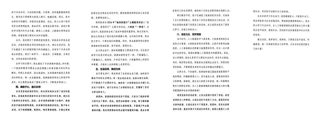 本站讯 为深入学习贯彻习近平新时代中国特色社会主义思想,弘扬诚信文化、倡导诚信行为、培养诚信品格,信息工程学院(软件职业技术学院)响应学校号召,结合工作实际开展2025年“诚信校园行”学生资助宣传教育“守诚信之本,怀感恩之心”主题征文活动。