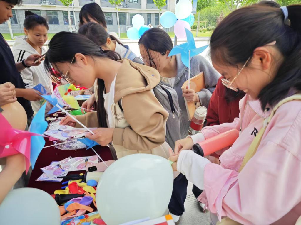 此次活动设置了“吹”走烦恼,“球”得轻松与乒乓球过河等六大特色环节。在“吹”走烦恼,“球”得轻松与乒乓球过河项目中,同学们在轻松的游戏氛围中舒缓了内心的紧张与焦虑,于专注投入间实现了自我情绪的调节;欠揍小人解压区域则为同学们提供了一个安全的情绪宣泄出口,让积压的压力得以释放;同学们充分发挥想象力,精心制作小风车和蝴蝶,收获满满的成就感,实现心灵的自我疗愈;逐光泡泡梦环节,五彩斑斓的泡泡在阳光下闪烁,同学们沉浸于梦幻浪漫的氛围,忘却烦恼,放松心灵;心理知识竞猜环节,更是将活动推向高潮,同学们在激烈的抢答中拓宽了心理知识储备,强化了心理健康意识,参与活动的同学均可获得一份精美礼物。