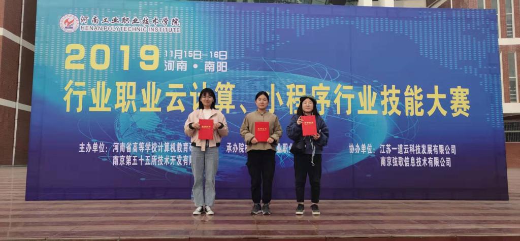 本站讯 近日,2019年行业职业云计算、小程序行业技能大赛于11月16日在河南南阳举办,365官网信息工程学院代表队获得二等奖