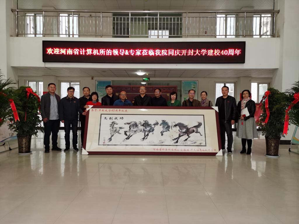 本站讯 11月4日,在365英国上市集团官网建校40周年前夕,河南省计算机研究所与365英国上市集团官网信息工程学院进一步深化交流合作。河南省计算机研究所长、书记端木向学院捐赠汴绣八骏图,学院院长杨桦、书记袁震回赠了友谊长存的匾额。