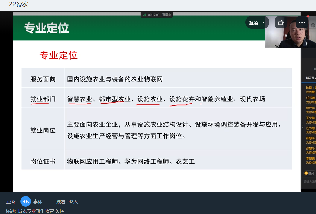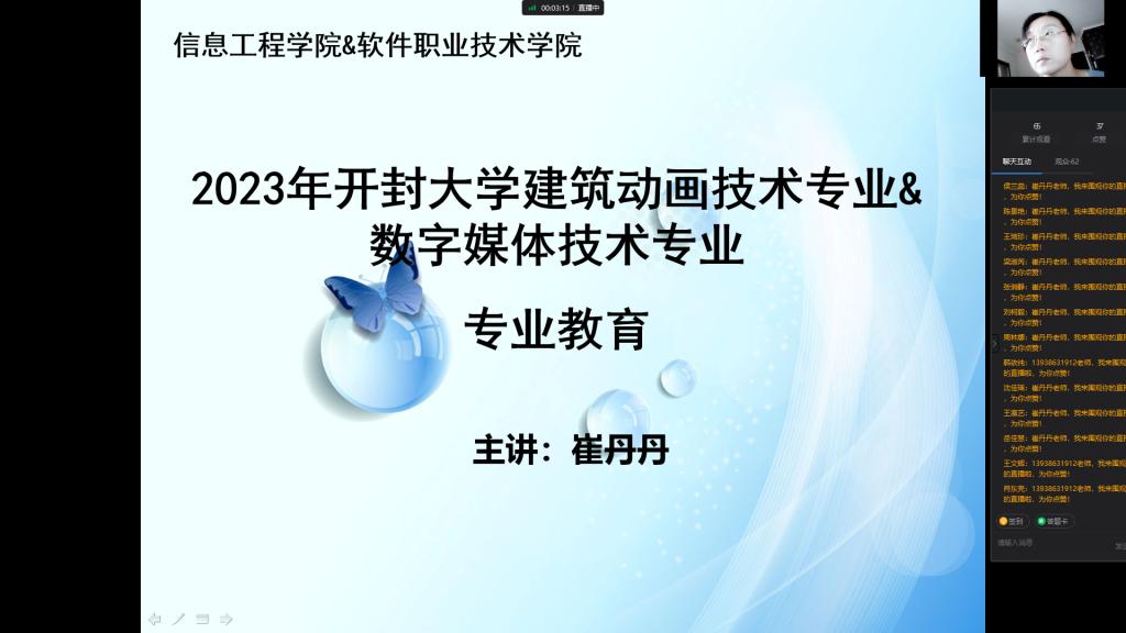本次专业教育结合各专业背景,根据最新的专业教学标准,分别为学生重点进行了四个方面的介绍:一是专业发展史、办学条件、办学特色、发展规划等内容;二是专业人才培养定位、培养规格、培养目标、毕业要求和学分要求,专业核心课程、职业面向和就业前景等内容;三是学生职业生涯规划、学习规划、学习目标、学习内容及学习方法等内容;四是提出线上教学和线上学习的要求,同时给同学们进行了线上教学平台的使用方法培训。
