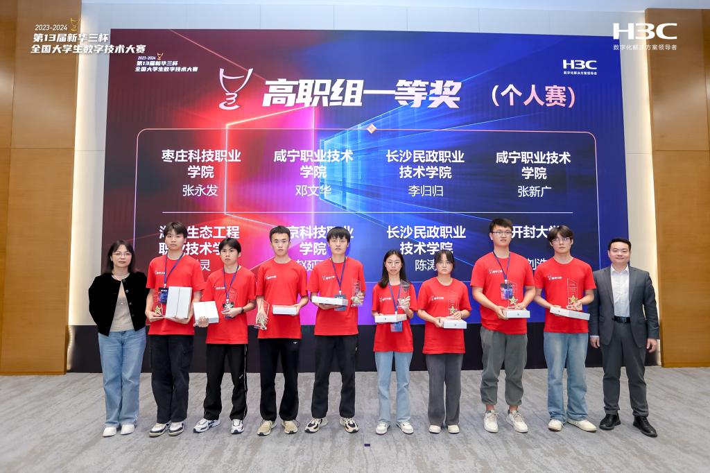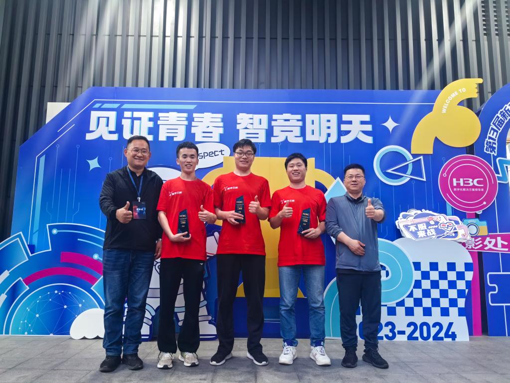 本站讯 近日,2023-2024年第13届新华三杯全国大学生数字技术大赛总决赛在新华三集团杭州总部落下帷幕,365官网母军臣和付红杰两位老师指导的学生获得个人赛一等奖1项,三等奖2项,团队赛二等奖,其中个人赛一等奖是河南省目前的最佳成绩,获得了突破。