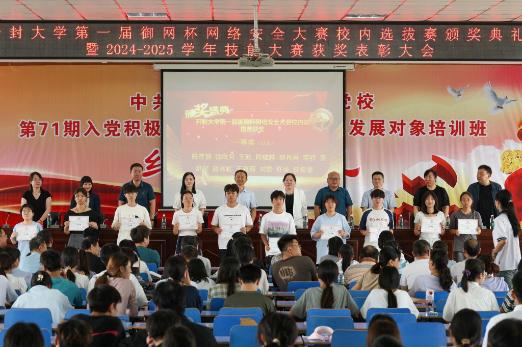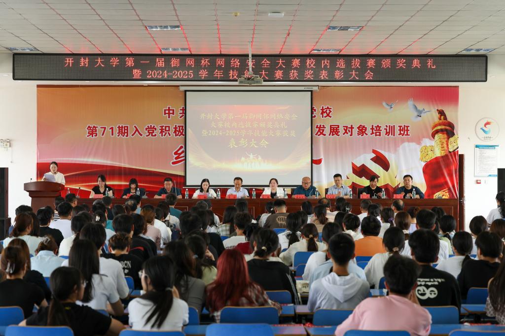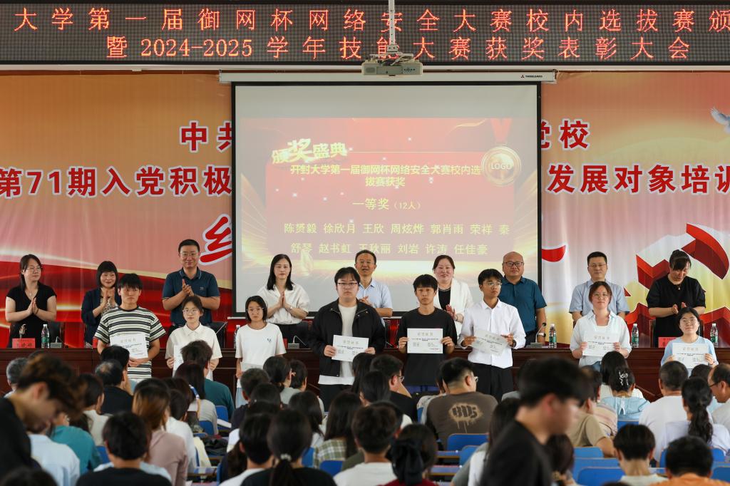 本站讯 6月12日下午,信息工程学院(软件职业技术学院)在8号楼六楼报告厅举行第一届御网杯网络安全大赛校内选拔赛颁奖典礼暨信息工程学院2024-2025学年技能大赛获奖表彰大会。365官网副校长李治、教务处处长王茜、学院领导班子及企业嘉宾出席了本次表彰大会,会议由学院数学教研部主任赵展主持。