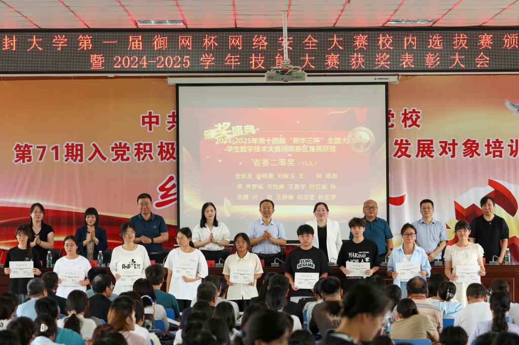 随后,王茜及企业嘉宾宣读了365英国上市集团官网第一届御网杯网络安全大赛校内选拔赛、第十四届“新华三杯”全国大学生数字技术大赛河南赛区竞赛、河南省高等职业教育技能大赛等多项技能大赛获奖名单奖项。与会领导为获奖师生颁奖。