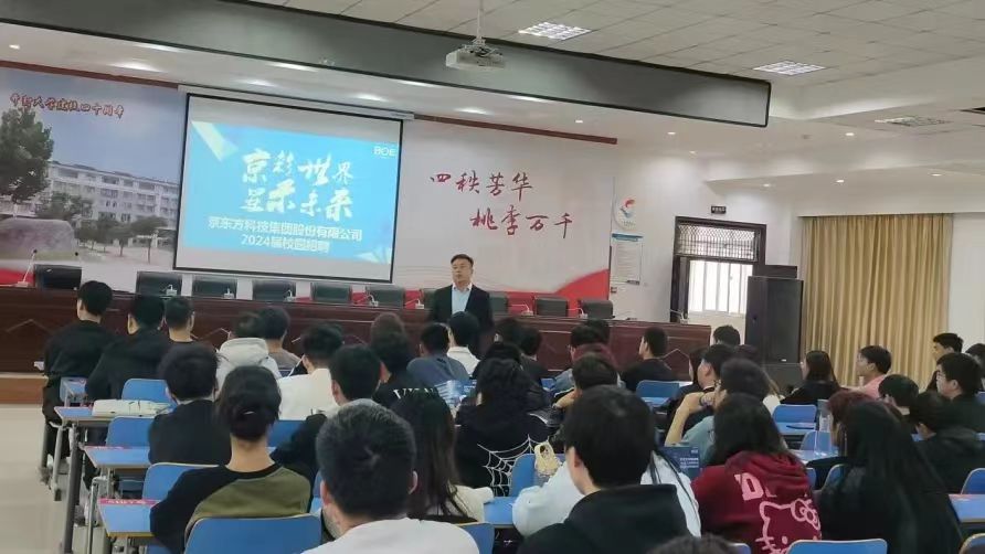本站讯 为贯彻落实习近平总书记关于职业教育的重要指示精神,全力推进学院2024届毕业生的就业指导工作,信息工程学院于10月11日下午在土木工程学院六楼报告厅携手京东方科技集团成功举办了一场专场就业招聘会。信息工程学院党总支副书记李红礼、部分2024届计算机应用技术专业辅导员和毕业班同学参加活动。