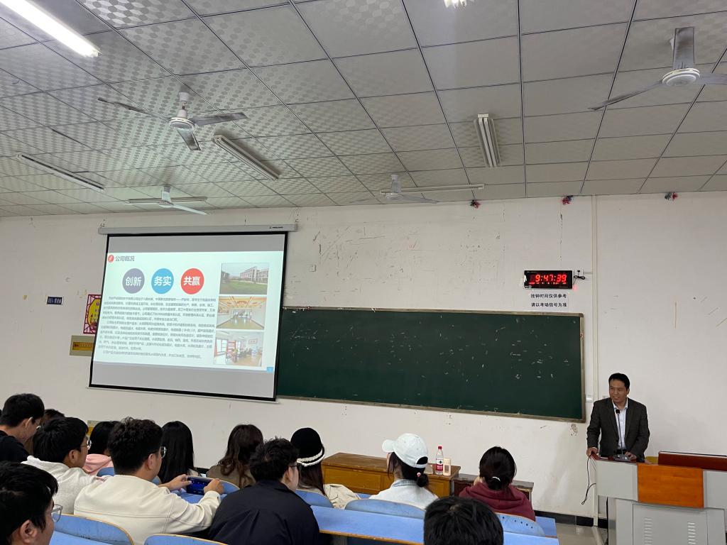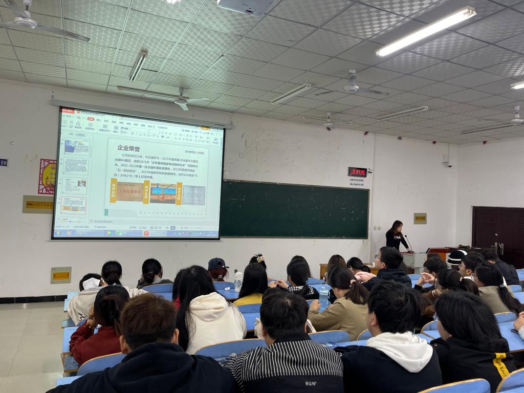 李林在宣讲会之前,代表学院向到会的所有企业表示热烈欢迎,并鼓励同学们以“先就业再择业”的就业方式,开启自己的实习和就业阶段。宣讲会上,入会的企业一一给同学们讲解了公司的情况、招聘岗位、薪资待遇和住宿条件等,宣讲会上同学们积极主动和企业人员进行互动,现场氛围非常热烈。