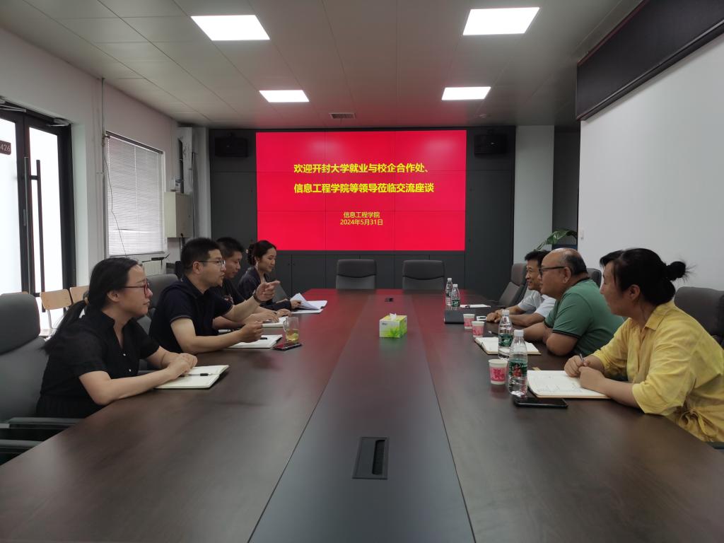 黄河水利职业技术学院信息工程学院院长吕振雷、办公室主任徐博文、校企合作办公室和计算机网络技术教研室负责人热情接待了师兆忠张新成行,并做了深入的交流会谈。吕院长详细介绍了华为ICT产业学院、云智产业学院工匠工坊、鲲鹏产业学院的建设情况,其中就学院与华为公司、郑州向心力公司之间展开的师资培养、华为认证证书、华为ICT竞赛等方面合作做了详细说明。